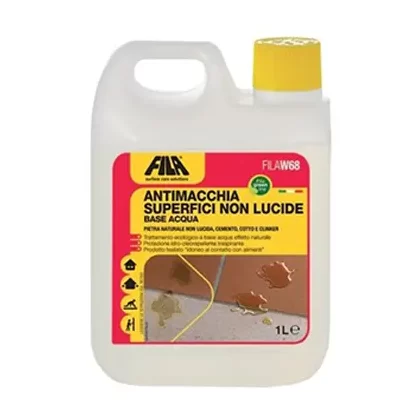 Fila W68 Antimacchia  per superfici non lucide base acqua. Impregna e protegge dagli sporchi oleosi, materiali assorbenti come pietre naturali grezze, cotto e cemento.