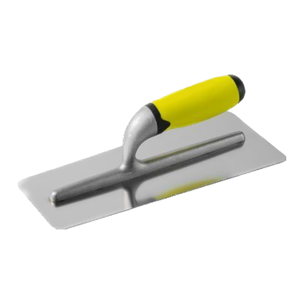 Frattone Acciaio Inox per Stucco Serie 954 è uno strumento composto da una lama in acciaio di forma trapezoidale allungata, dai bordi lisci, al centro del quale si trova un inserto anch’esso metallico piegato ad L rovesciata su cui si innesta il manico. Il frattone acciaio viene impiegato per spalmare fino a rasatura materiali fluidi senza inerti o con pezzatura sottilissima.