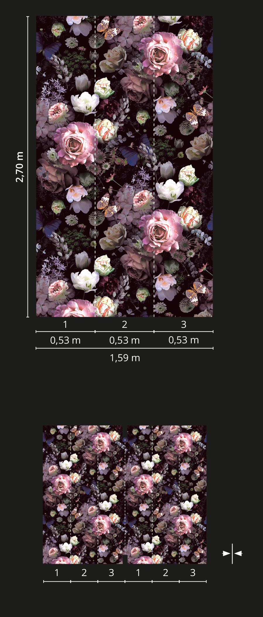 Le carte da parati sono spedite con lo stesso numero di partita/lotto (batch number). Troverete il numero sull’etichetta che accompagna ogni rotolo di carta da parati. Quando fate un ordine ripetuto per la carta da parati, menzionate il numero di lotto per evitare deviazioni di colore.