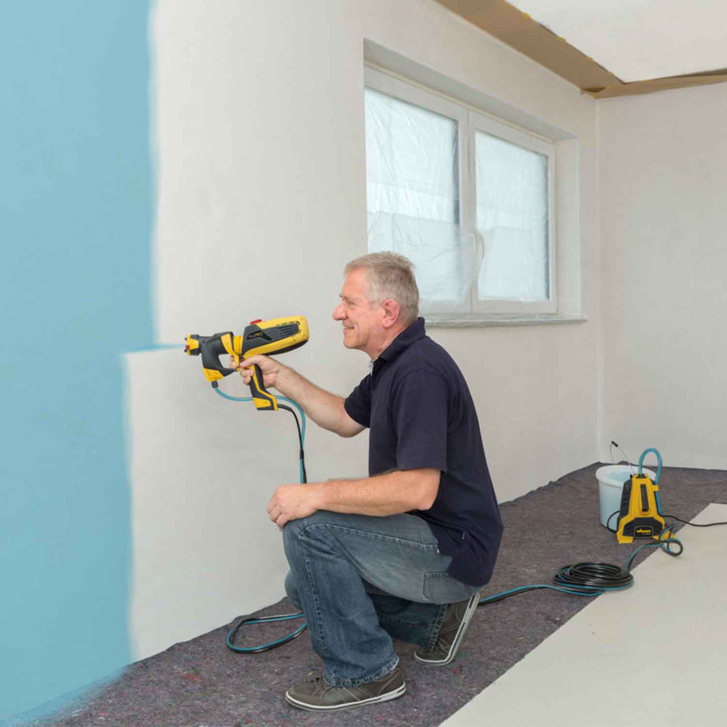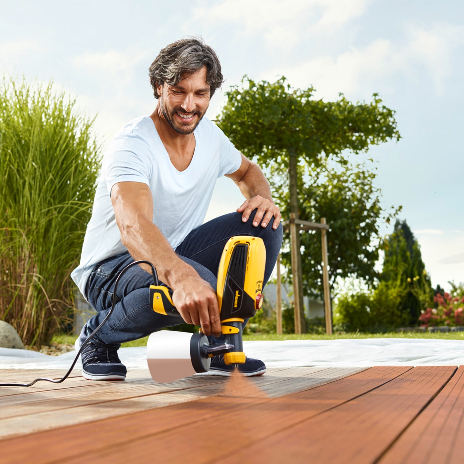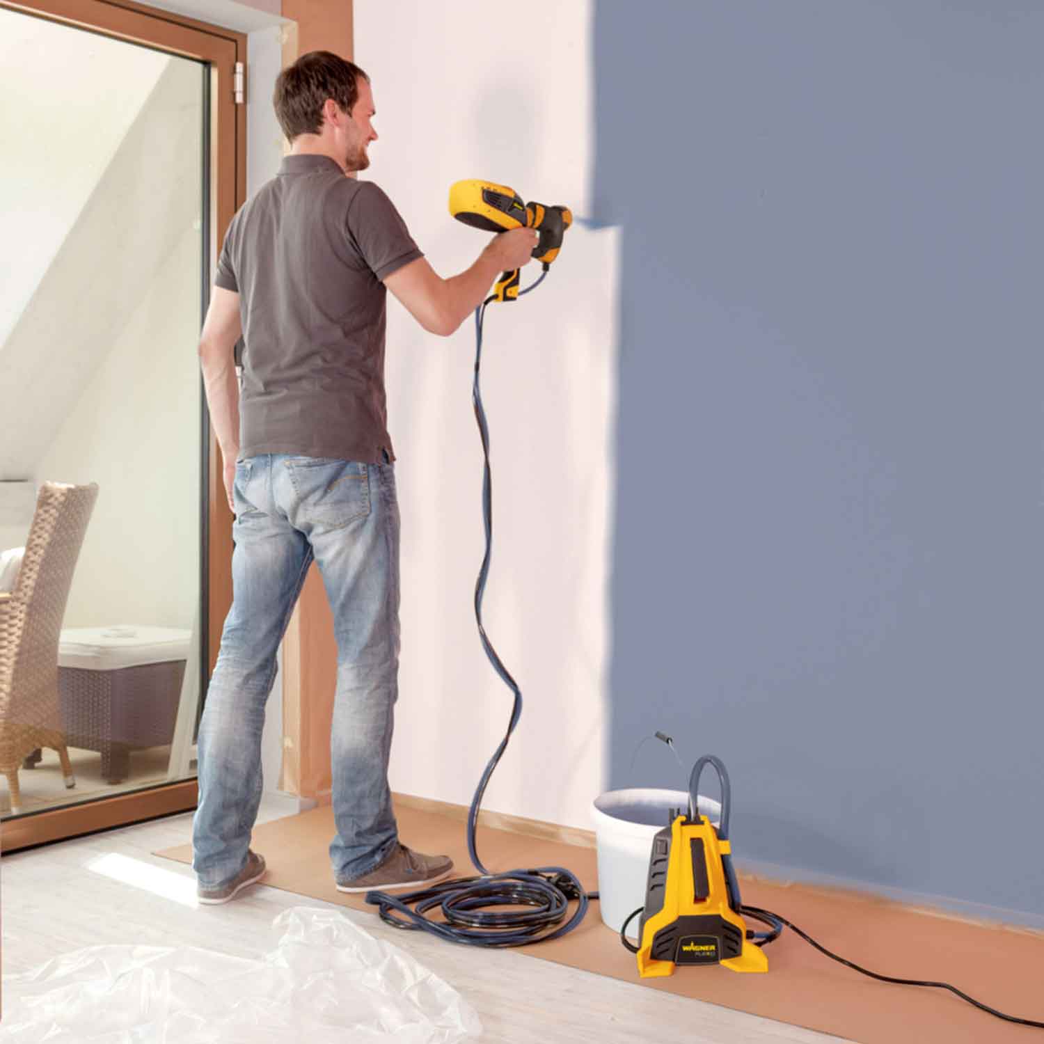Il comodo sistema a spruzzo airless per grandi e medie superfici. Con attacco diretto sul secchio e tubo da 7 metri.