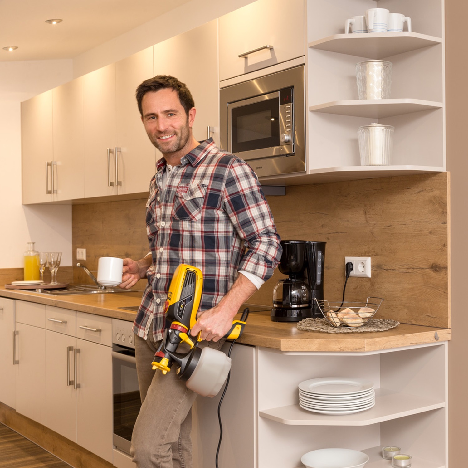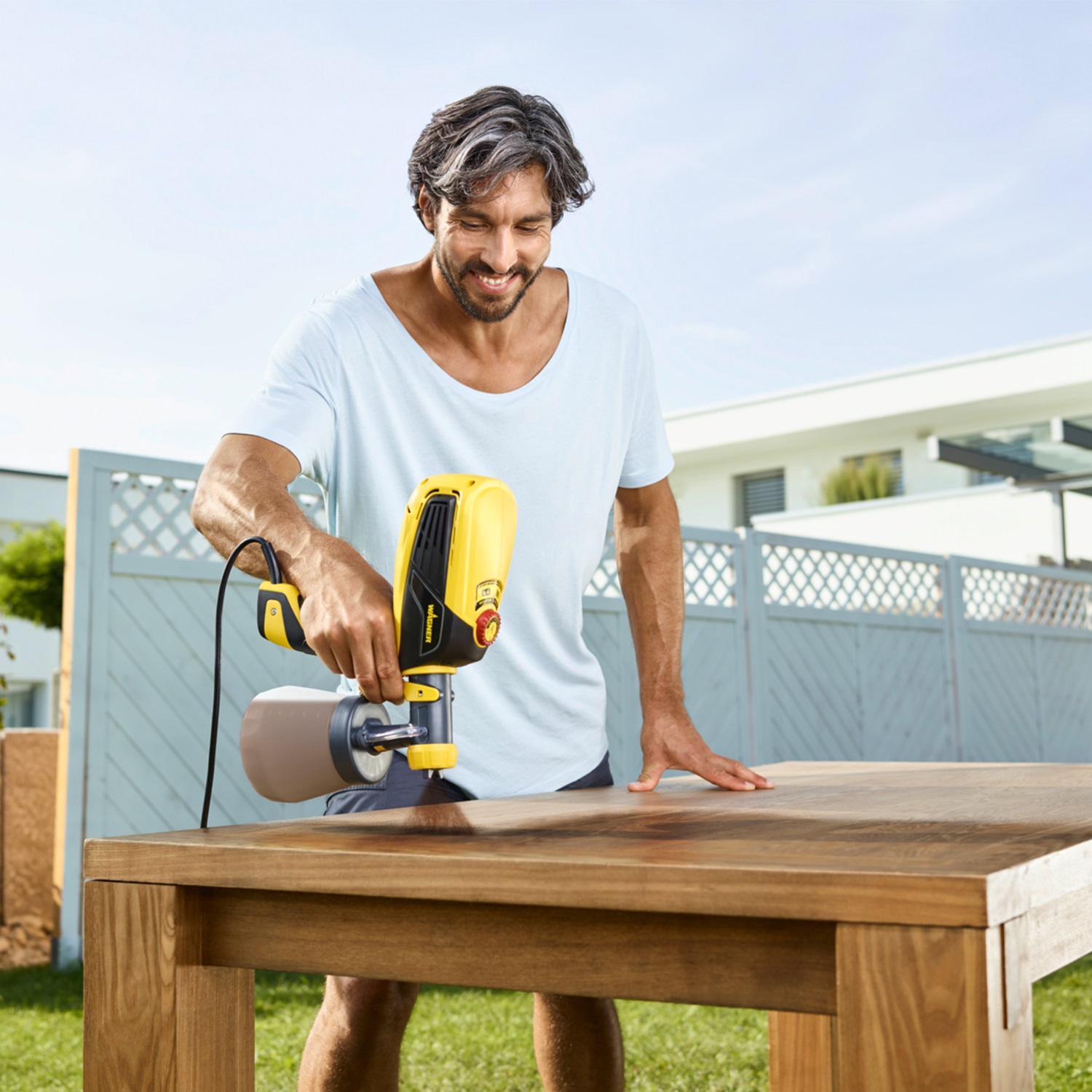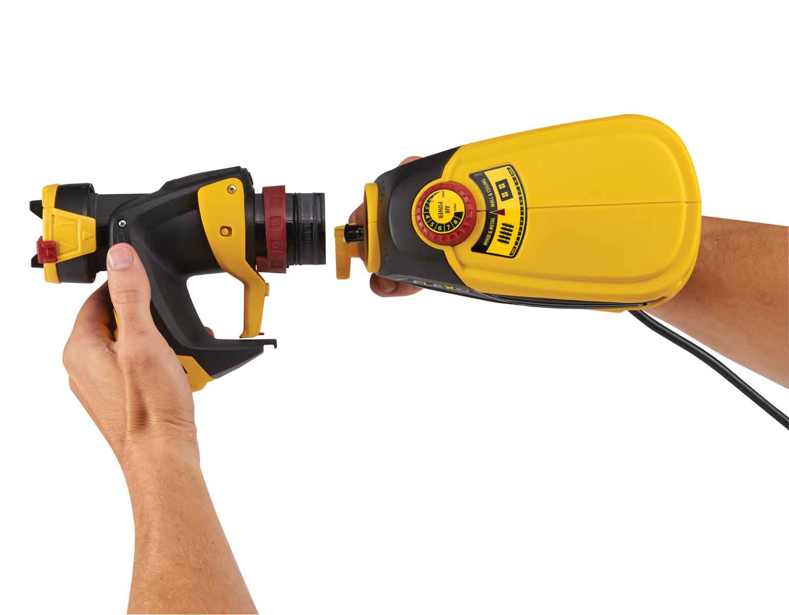 Il comodo sistema a spruzzo airless per grandi e medie superfici. Con attacco diretto sul secchio e tubo da 7 metri.